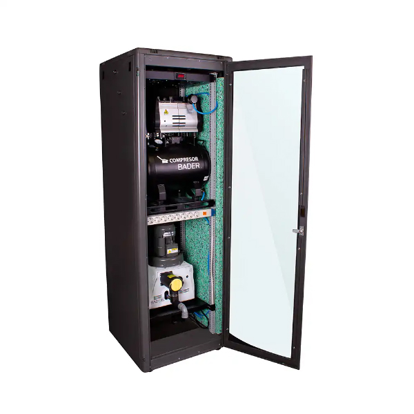 Armario insonorizado para aspiraciones y compresores. Compacto y silencioso, está diseñado específicamente para guardar compresores y sistemas de aspiración, ofreciendo un entorno más silencioso y cómodo al profesional.